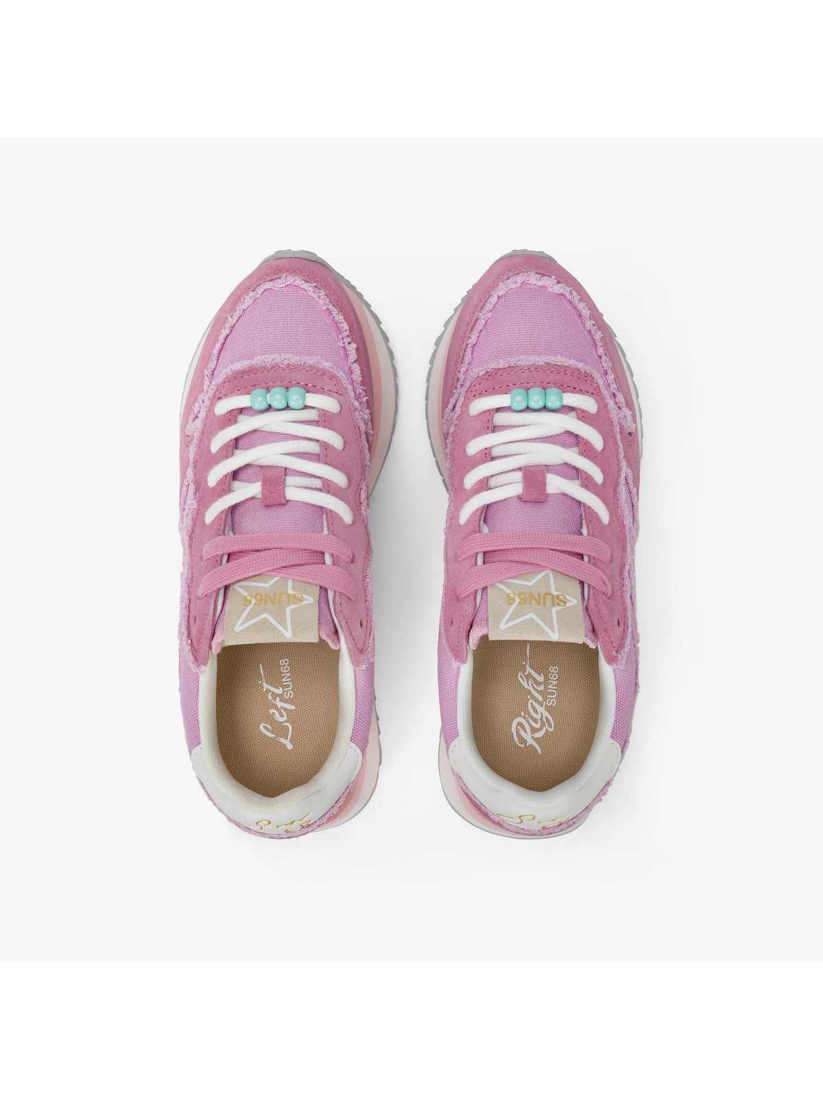 Sneaker Sun68 hecho con Tomaia en gamuza y lienzo se destaca para los perfiles deshilachados